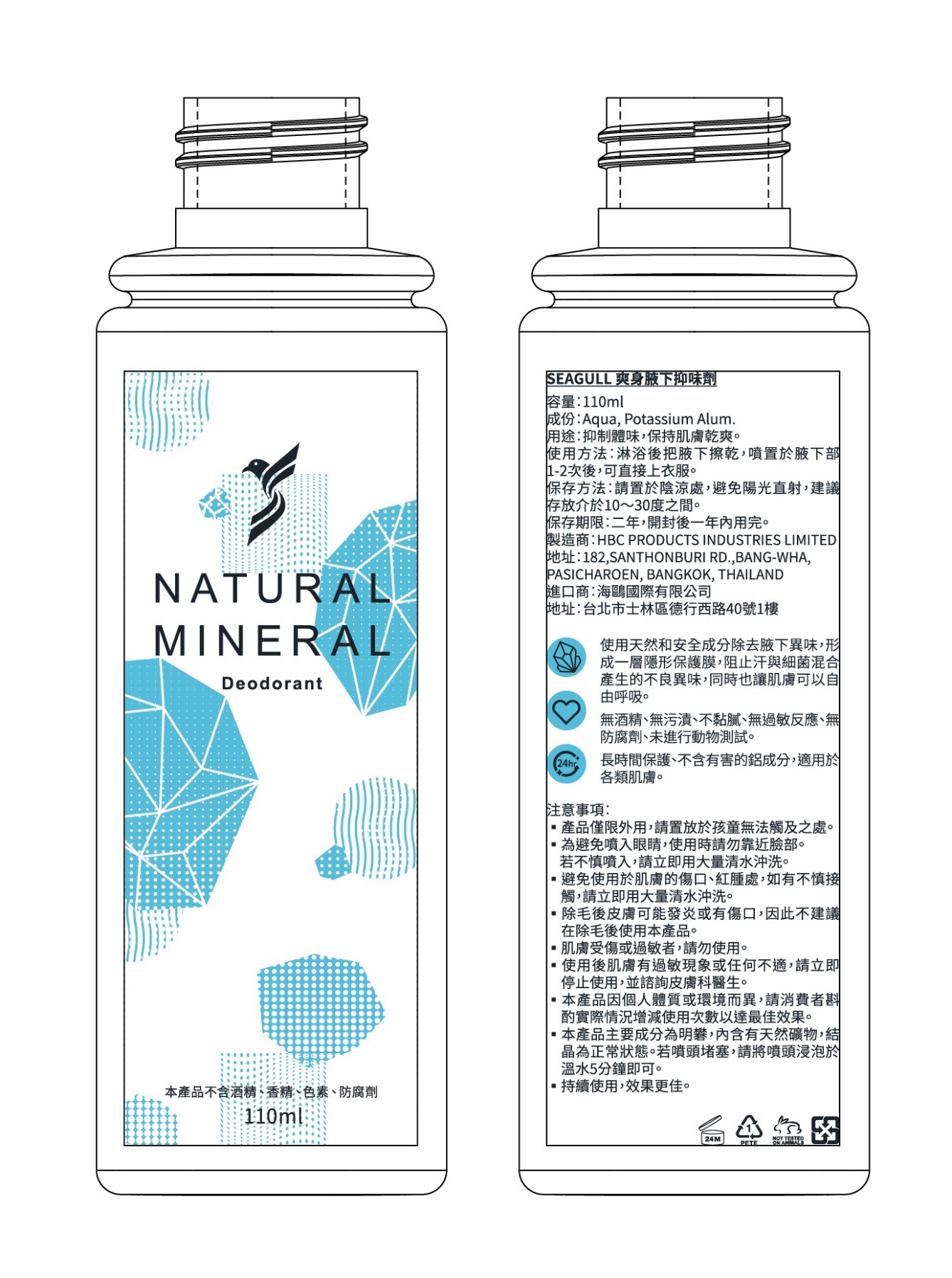 - 本產品主要成分為明礬,內含有天然礦物,結晶為正常狀態。若噴頭堵塞,請將噴頭浸泡於溫水5分鐘即可。